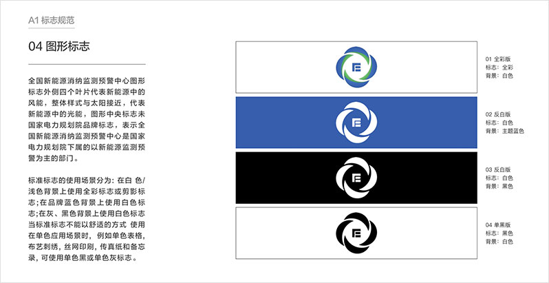 制約新能源消納的關(guān)鍵因素,為新能源的優(yōu)化布局和行業(yè)政策制定提供參考,促進(jìn)我國新能源高質(zhì)量發(fā)展。 藍(lán)藍(lán)設(shè)計(jì)對(duì)全國新能源消納監(jiān)測(cè)預(yù)警中心的工作范圍做了調(diào)查研究,首先理解業(yè)務(wù)和核心競爭力,之后調(diào)查了行業(yè)相關(guān)品牌標(biāo)志設(shè)計(jì),聽取了大家的期望,之后設(shè)計(jì)出多版logo供選擇。標(biāo)志設(shè)計(jì)確定后進(jìn)行了VI和宣傳冊(cè)的設(shè)計(jì)。