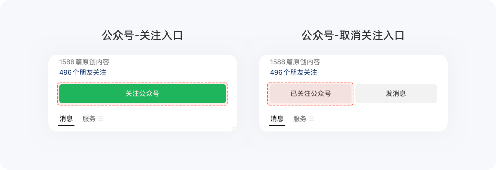 有時(shí)候,出于商業(yè)化的目的,同一個(gè)選項(xiàng)在二次操作時(shí),產(chǎn)品會(huì)刻意增加用戶操作成本,以降低選擇效率,看似??硕傻姆聪虿僮?,卻一定程度地降低了用戶退出率,實(shí)則對(duì)產(chǎn)品有益。例如,在關(guān)注微信公眾號(hào)之前,非常醒目的關(guān)注按鈕觸手可及,可關(guān)注之后,弱化的幽靈按鈕及文案,很難一眼看出這就是取消關(guān)注入口,需要用戶花費(fèi)額外的時(shí)間去理解或試錯(cuò)方可取關(guān),這么做能降低公眾號(hào)粉絲的取關(guān)量。為公眾號(hào)留住粉絲,更是對(duì)內(nèi)容認(rèn)可的一種支持,后面的良性循環(huán)無(wú)需多講。