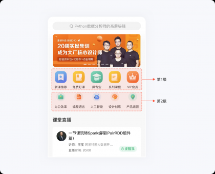 在設(shè)計(jì)過(guò)程中,如果沒(méi)有對(duì)功能層級(jí)進(jìn)行劃分,一股腦地將所有功能入口平鋪的話,就需要用戶花費(fèi)大量的時(shí)間和精力來(lái)查找需要的功能,無(wú)疑是一場(chǎng)災(zāi)難。我們可以通過(guò)??硕蓙?lái)優(yōu)化界面功能布局,根據(jù)業(yè)務(wù)的重要性對(duì)功能入口進(jìn)行分類組合,減少用戶的認(rèn)知及理解成本,以便快速達(dá)到目的。