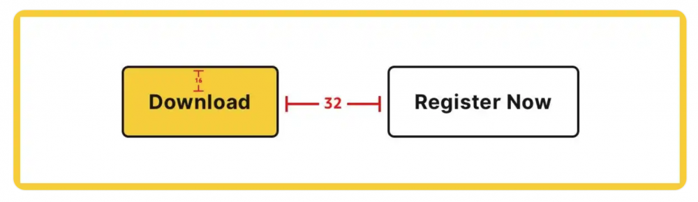 在上圖的案例中,設(shè)計(jì)師盡可能使用 8 的倍數(shù)來定義所有的設(shè)計(jì)參數(shù),包括按鈕的長(zhǎng)寬尺寸、按鈕的內(nèi)邊距(Download距離按鈕頂部的內(nèi)邊距)、按鈕和按鈕的間距等。8 點(diǎn)網(wǎng)格可以進(jìn)一步降低設(shè)計(jì)師的決策難度,提升設(shè)計(jì)效率。