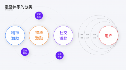 ?有些文章從產品表現(xiàn)形式出發(fā)將用戶激勵劃分為等級體系、勛章體系、積分體系、會員體系等,但這樣劃分概念容易交叉重疊,大部分等級體系里經常包含了積分,有些會員體系里還會嵌套勛章體系。因此,在分析各類產品和相關資料后,從激勵手段與用戶情感需求出發(fā),可以將用戶激勵體系分為平臺精神激勵、物質利益激勵、社交情感激勵三種。