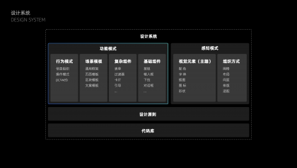 所以如何解決團(tuán)隊(duì)效率和產(chǎn)品質(zhì)量問(wèn)題?我們的解法是抽象體系化的解決方案:設(shè)計(jì)模式化和代碼化,設(shè)計(jì)從原子到全局進(jìn)行統(tǒng)一和優(yōu)化,并形成系統(tǒng)化的設(shè)計(jì)指導(dǎo),由開(kāi)發(fā)進(jìn)行模式代碼化,提供靈活可配置的規(guī)則。以此,設(shè)計(jì)有更系統(tǒng)化的設(shè)計(jì)原則,整體的統(tǒng)一性和體驗(yàn)有保障,設(shè)計(jì)和開(kāi)發(fā)周期也可以縮減,甚至大部分日常需求可直接由產(chǎn)品對(duì)接開(kāi)發(fā)直接上線。