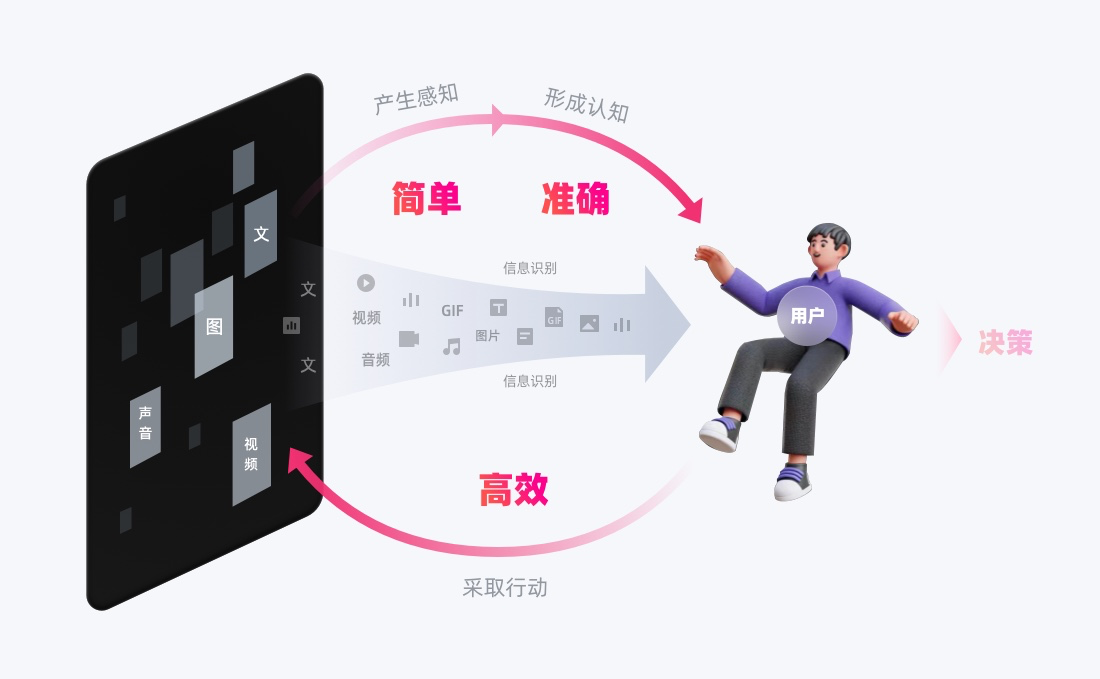 「信息識別」項(xiàng)目目標(biāo)是為用戶提供「感知上簡單、認(rèn)知上準(zhǔn)確」的信息,讓用戶與界面的互動更高效、流暢。