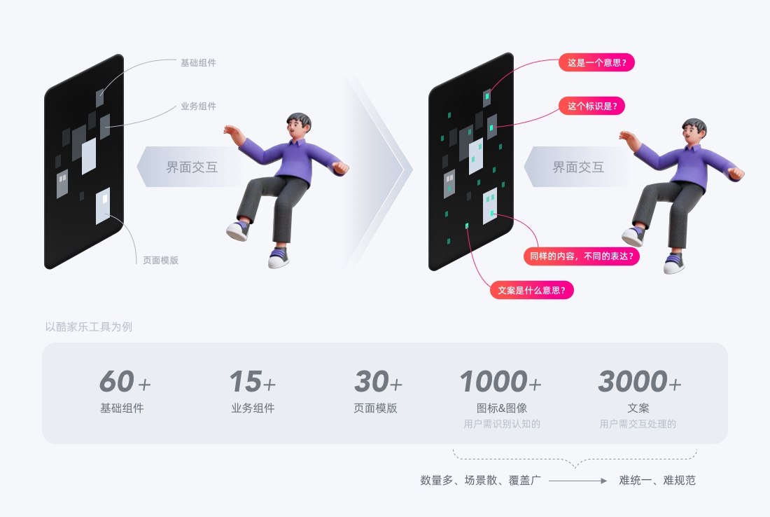 群核UED搭建設(shè)計(jì)規(guī)范體系已有多年,即便有相對豐富和完整的設(shè)計(jì)體系,我們呈現(xiàn)給用戶交互界面仍有體驗(yàn)不一致、操作難理解、同一對象不同表達(dá)的問題,為什么?