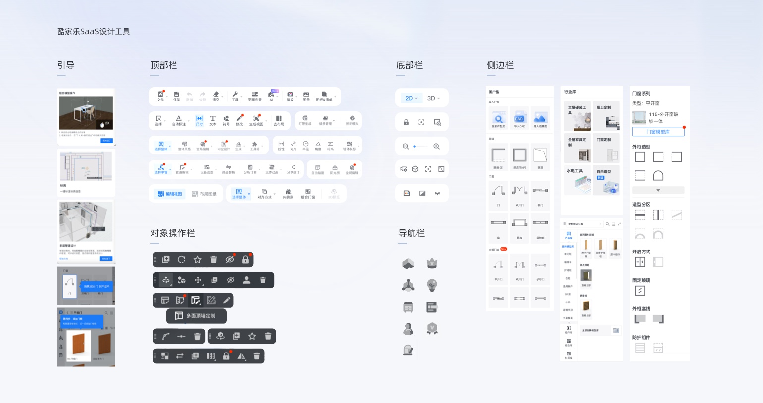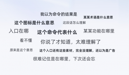群核科技下產(chǎn)品正是這樣的特點(diǎn),以酷家樂云設(shè)計(jì)工具為例,系統(tǒng)交互結(jié)合各行業(yè)垂類場景,各種命令、操作、引導(dǎo)、畫面控制等信息的表達(dá)很容易讓用戶疑惑。