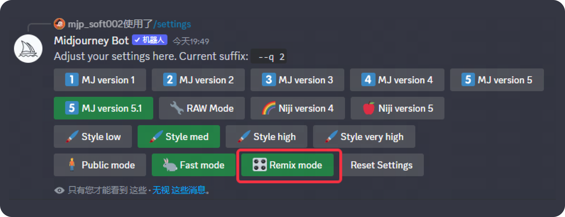 確定好修改方向后,我們回到Midjourney中,設(shè)置好混音模式Remix mode,修改關(guān)鍵詞對畫面中元素進行替換。