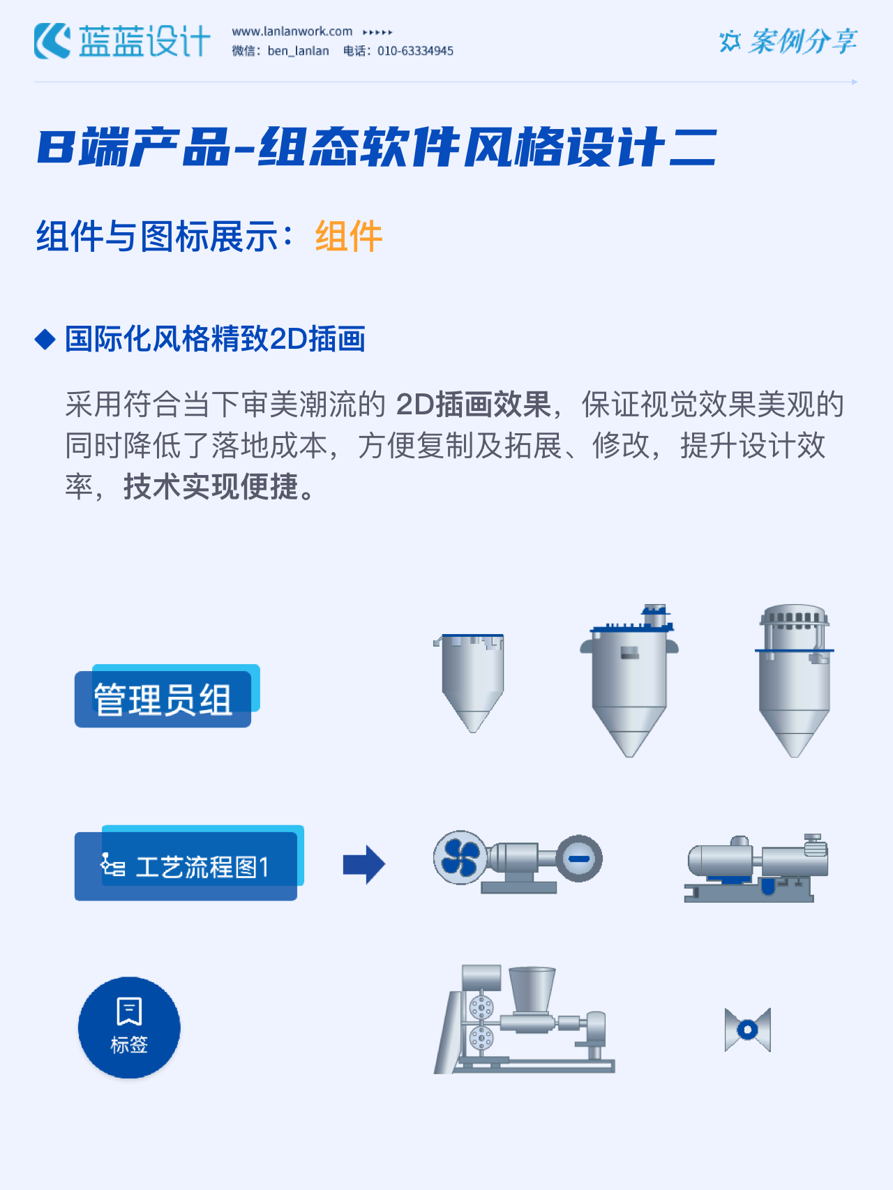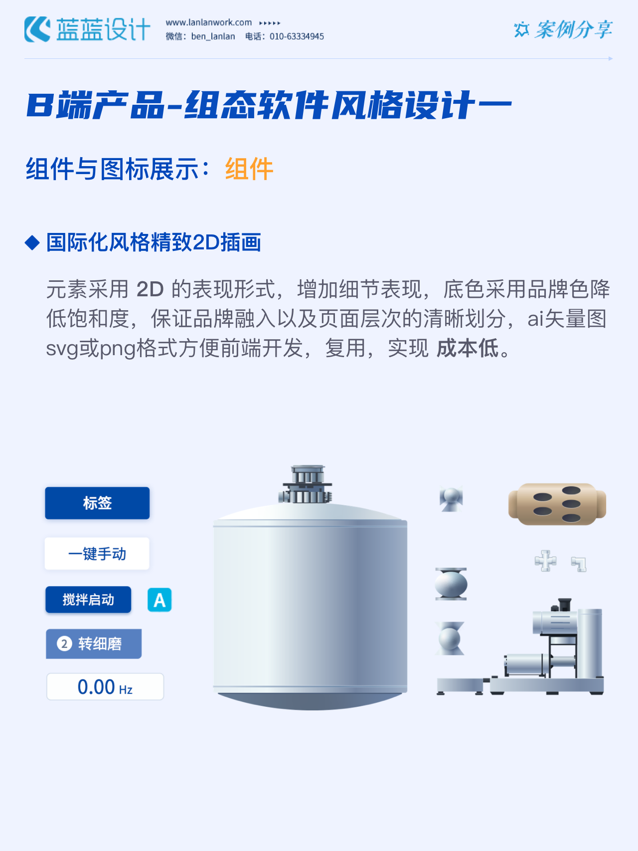 藍藍設計的兩種組態(tài)軟件風格都采用符合當下審美潮流的2D插畫效果,既保證了視覺效果美觀的同時也降低落地成本,方便后續(xù)的拓展、修改、提升與設計效率,同時注重用戶的閱讀習慣,將原功能點重新布局,主次內(nèi)容對比明顯,降低視覺噪音,保證清晰順暢的操作,提升用戶體驗!