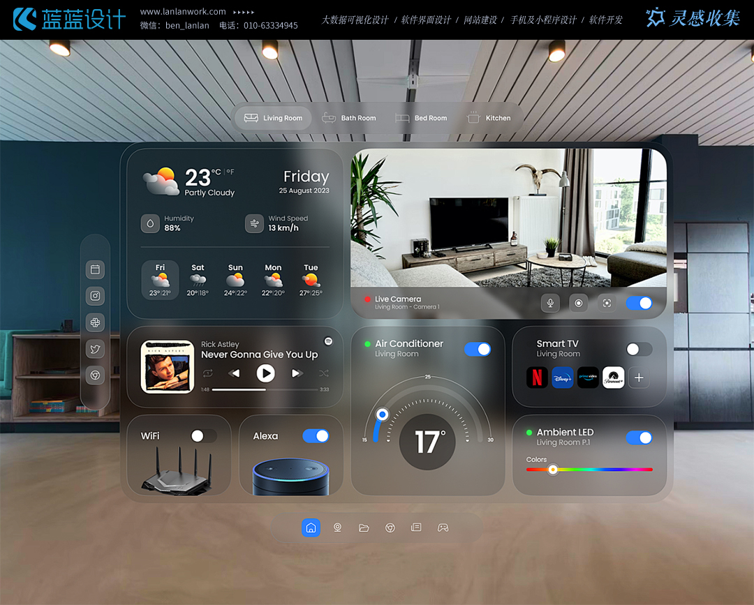 在智能家居領(lǐng)域,大屏UI設(shè)計(jì)成為了家庭控制中心的核心界面。通過智能大屏,用戶可以輕松實(shí)現(xiàn)對(duì)家中各種智能設(shè)備的控制和管理。大屏UI設(shè)計(jì)不僅提供了直觀的操作界面,更通過豐富的視覺元素和動(dòng)畫效果,提升了用戶的交互體驗(yàn)。用戶只需輕觸屏幕,就能完成燈光調(diào)節(jié)、窗簾開關(guān)、家電控制等操作,讓生活變得更加便捷和智能。