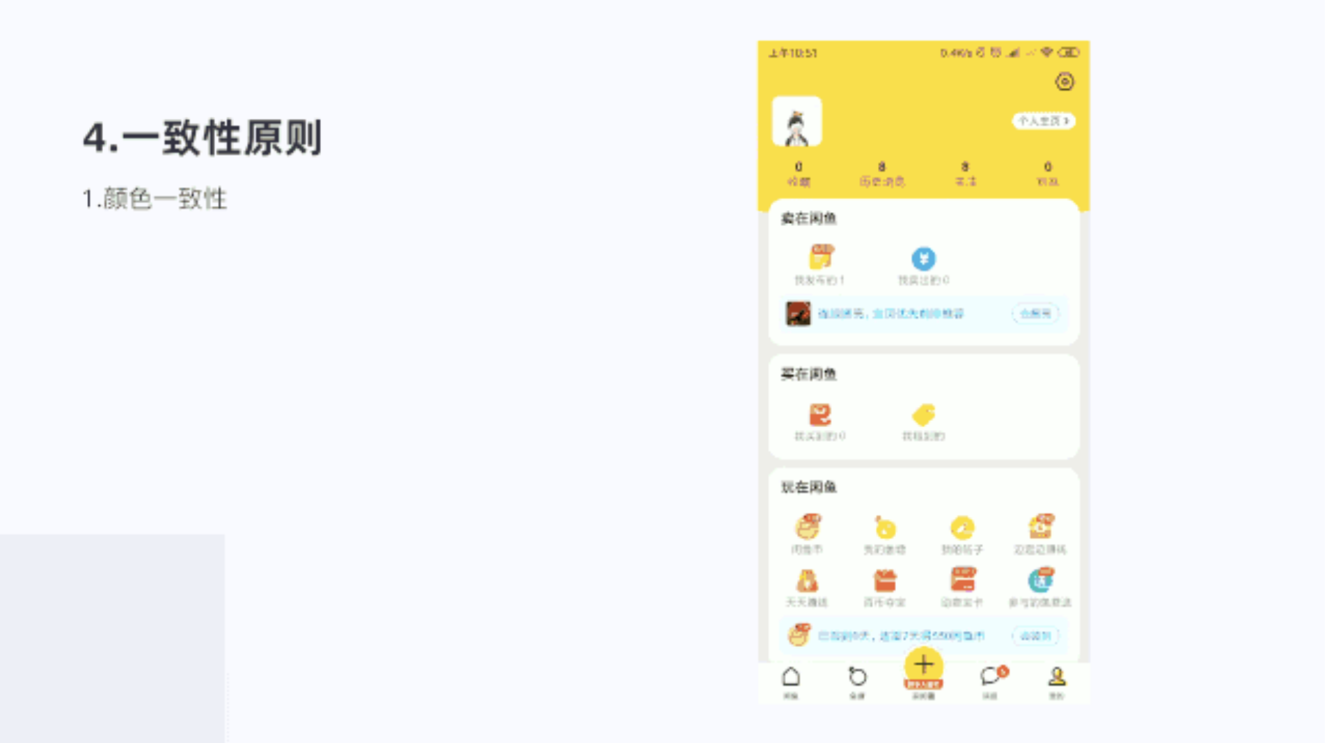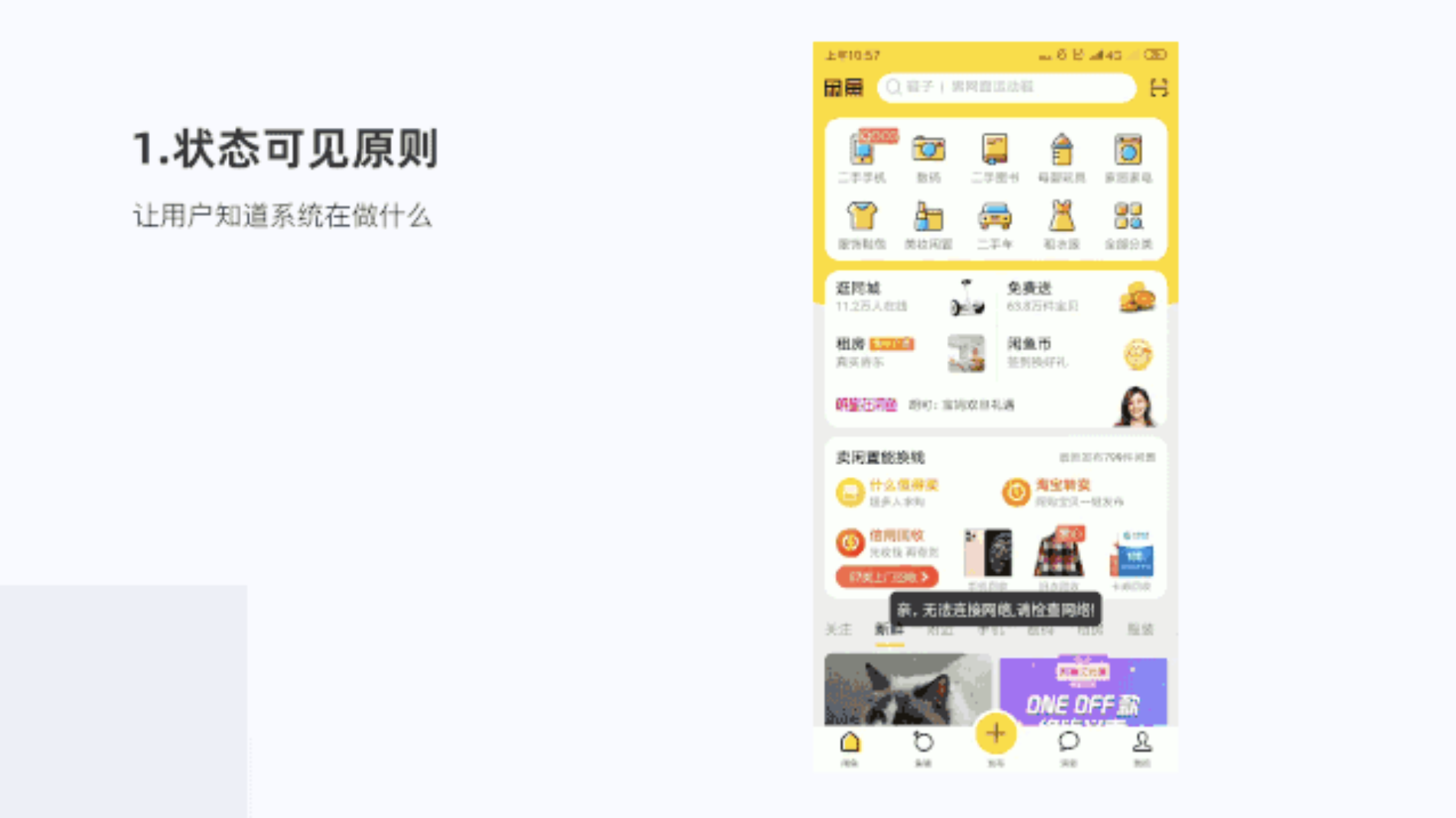 今天我們主要從用戶體驗(yàn)的部分原則來看閑魚,主要以產(chǎn)品視覺設(shè)計(jì)四大原則、交互設(shè)計(jì)十大可用性原則、情感化設(shè)計(jì)來看閑魚