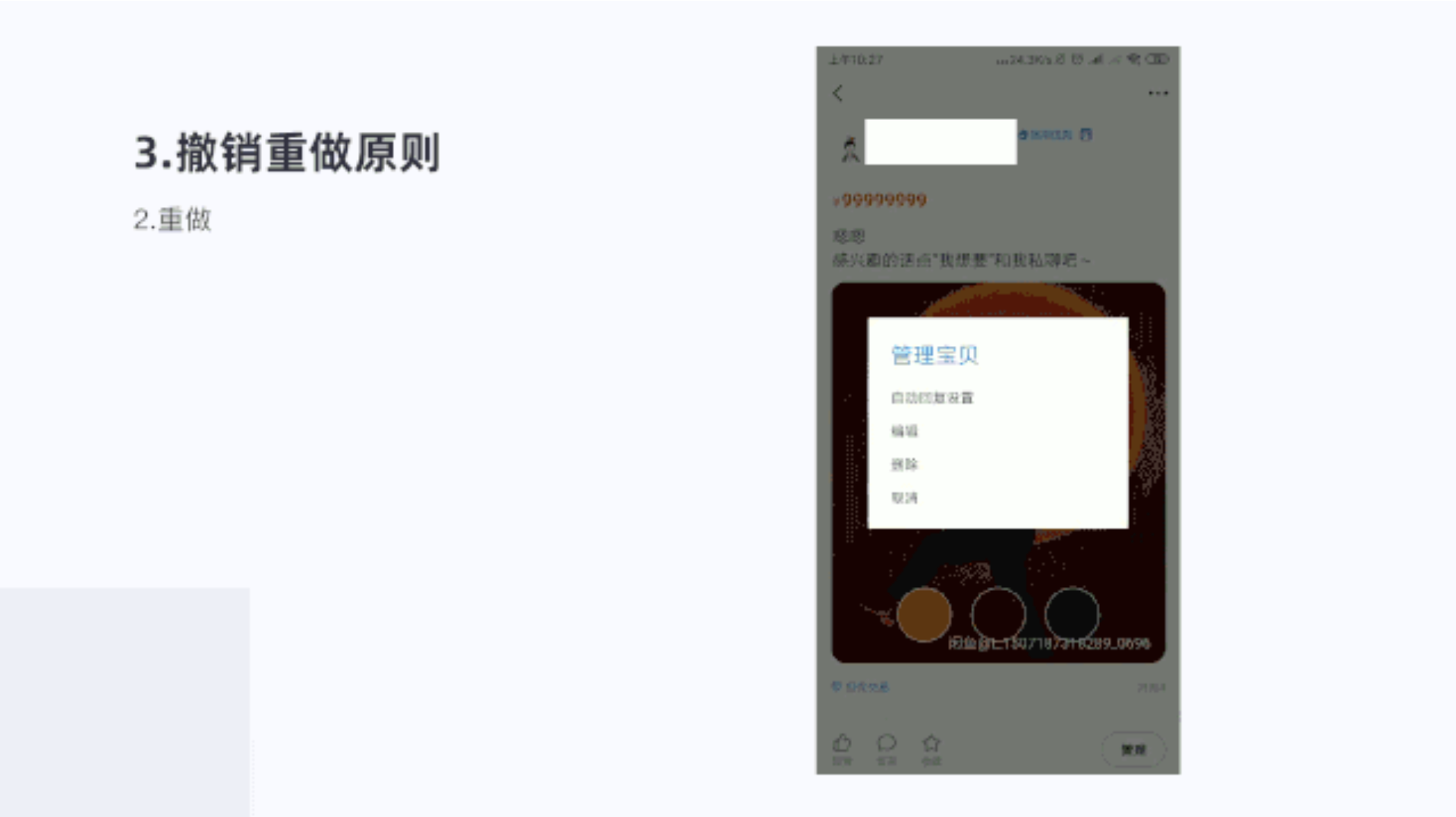 就是用戶撤銷上一步,又反悔了要到之前哪一步;或者用戶操作完成發(fā)布又反悔了重新發(fā)布,滿足用戶充足的反悔余地,給予用戶對(duì)產(chǎn)品的信心和控制感。
