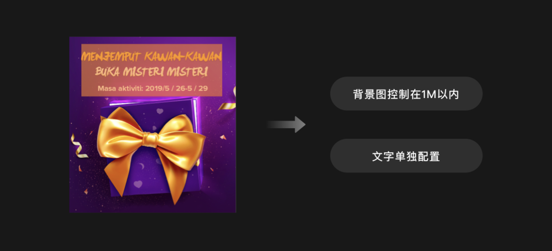 注意不要將文字直接嵌入圖片或視頻媒體中,需要分別以較小的個(gè)體進(jìn)行存儲(chǔ),便于替換。交付給開(kāi)發(fā) GG 的圖片也必須壓縮一下,不能超過(guò) 1M,不然會(huì)影響加載速度。