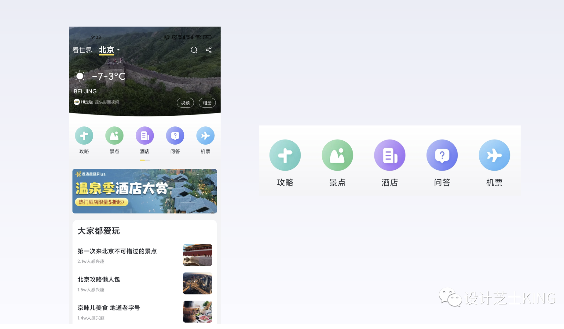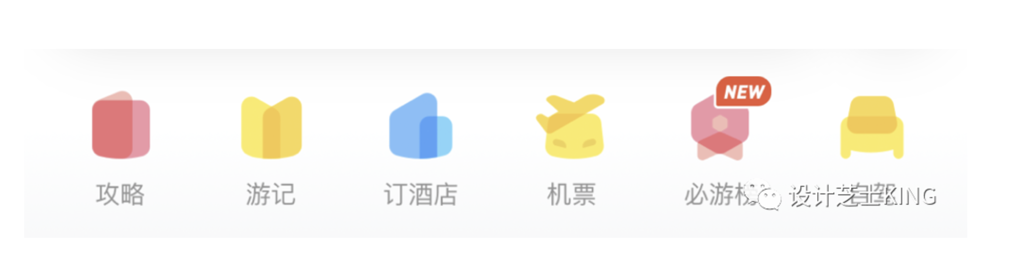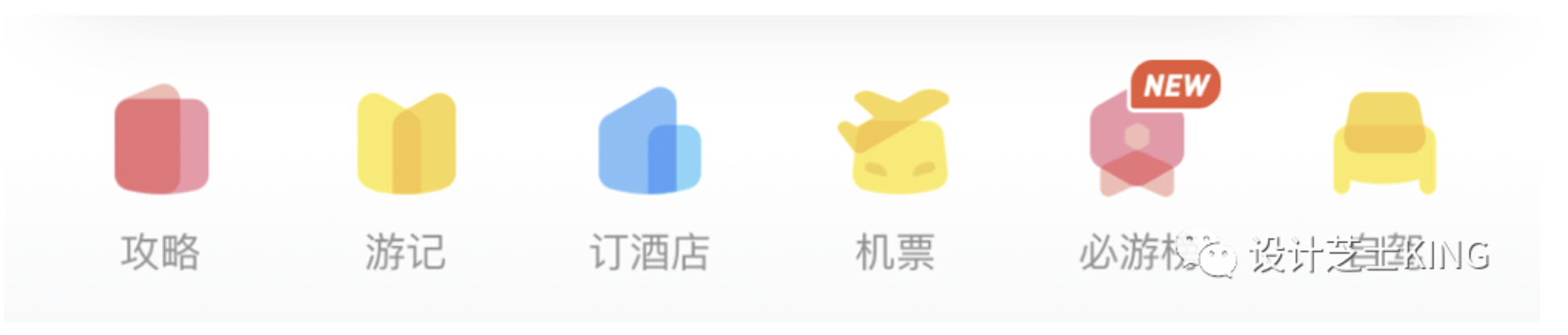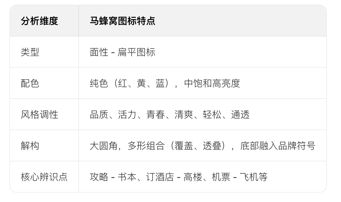 - 形狀直接表意(如酒店圖標(biāo)用高樓輪廓),避免抽象模糊(如馬蜂窩 “游記” 圖標(biāo)需優(yōu)化)。
