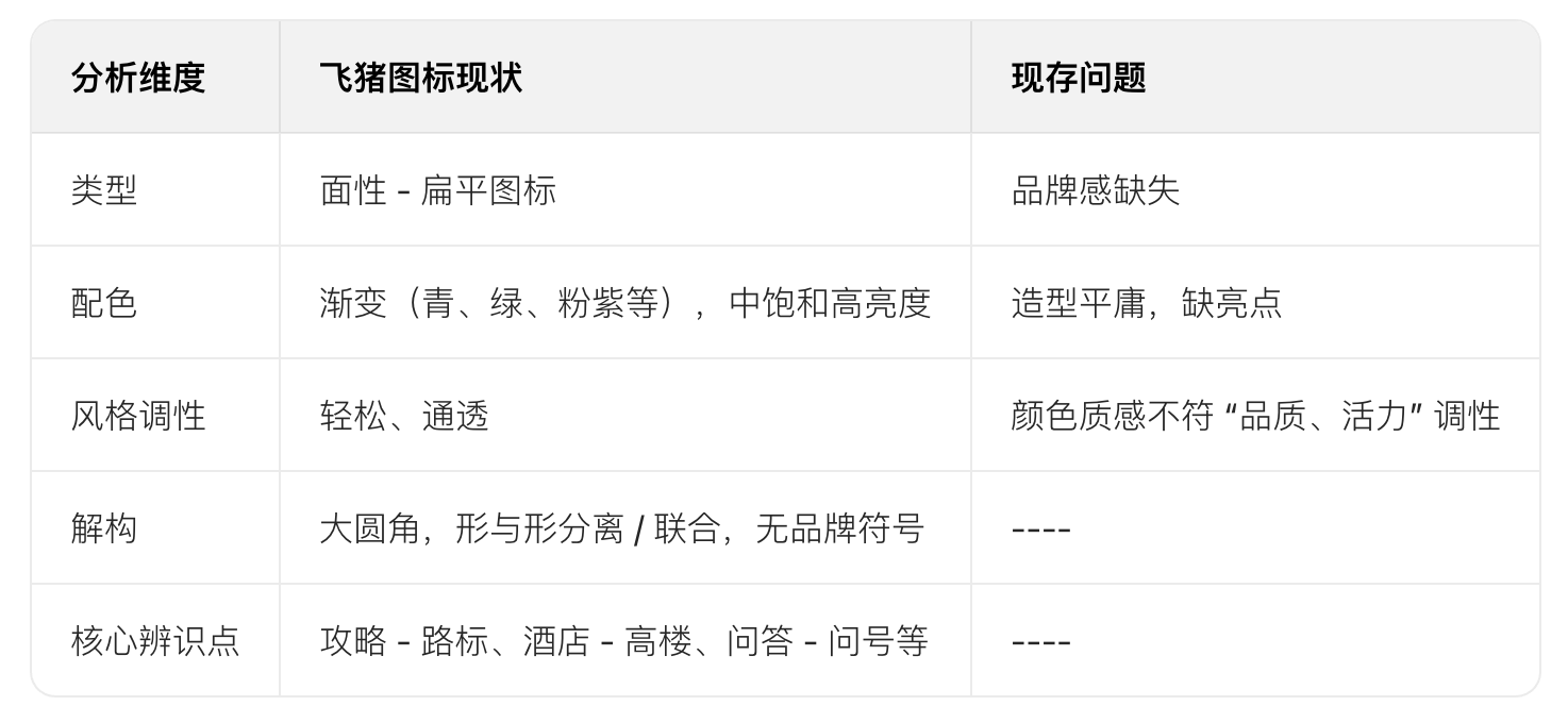 答案:從品牌中提取簡約幾何形作為超級符號(如飛豬的傾斜矩形),將其輪廓化、抽象化后融入圖標(biāo)結(jié)構(gòu),避免復(fù)雜圖形。例如飛豬在 “酒店” 圖標(biāo)中嵌入品牌符號,強化識別度,與競品形成差異。