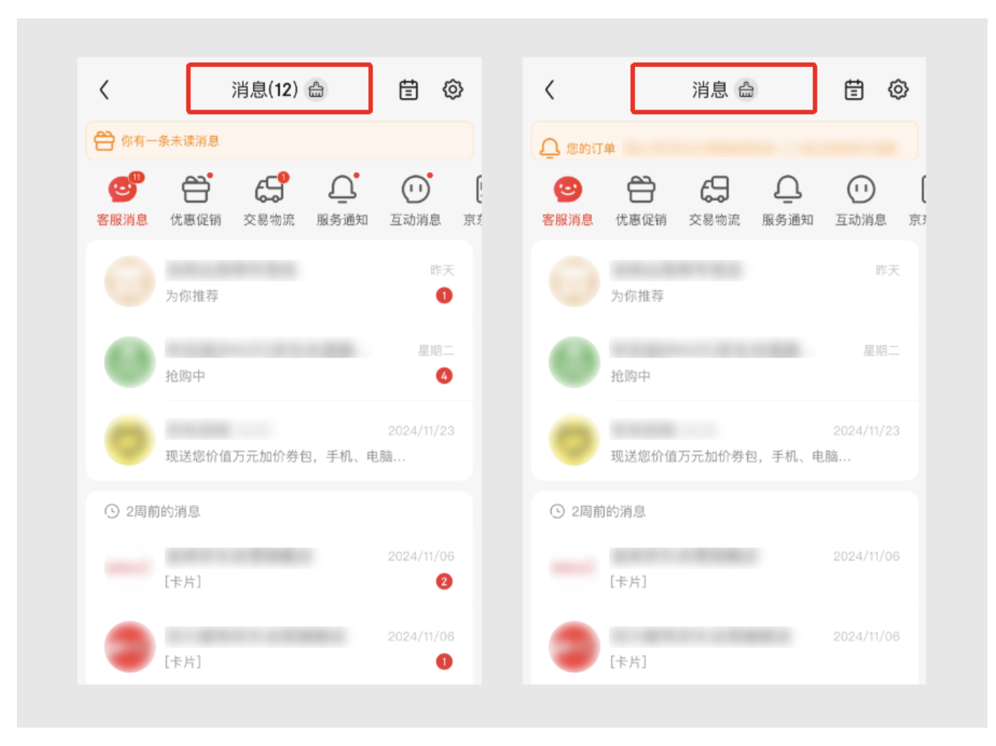 拼多多、京東、美團這類 APP,未讀消息大多是促銷、物流、商家群發(fā),即時性強但 “長期價值低”。比如拼多多的 “拼單成功通知”、美團的 “優(yōu)惠券過期提醒”,用戶看完一次就沒用了,攢多了只會占地方。