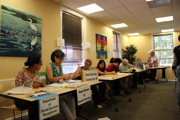 (找來Stanford別家NGO的義工還有我們VIA的領隊充當“政府部門”,由于場地原因,這個Poverty Simulation不是在D.School里面做的,我們借用了校園里隔壁一棟樓的Seminar Room)