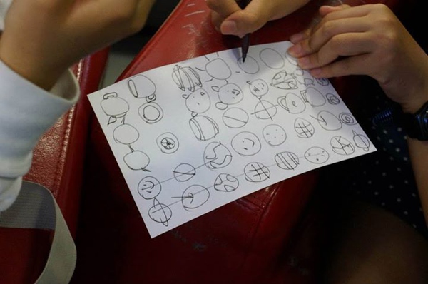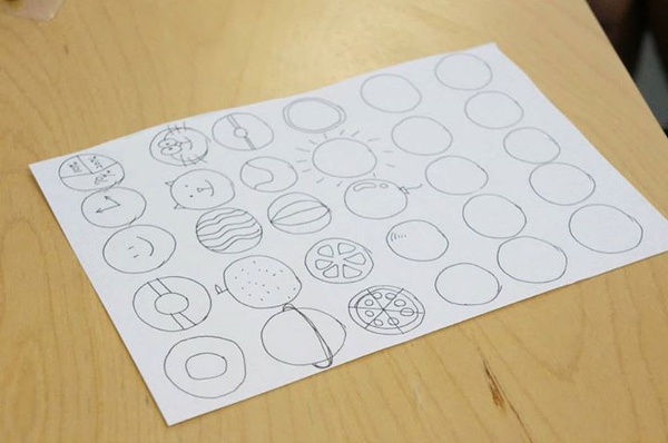 (這是在做頭腦風暴前的小練習,畫30個圓圈,然后盡可能地把每一個圓圈都賦予一個意義,變成不同的物件,這個聯(lián)系在很多關(guān)于頭腦風暴的工作坊里都有,Photo by Tatsuhiro Ohtani,VIA同事)