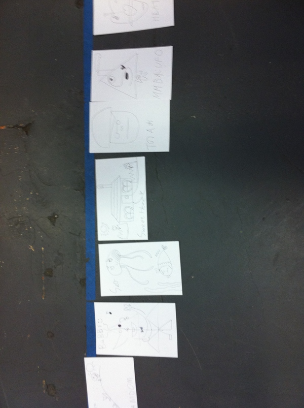 (然后是升級版,所有人一個,一人一筆去創(chuàng)造一個人物,還要給它命名。這個很有意思,因為會得到完全意料不到的結(jié)果,而越到后面卻越有默契,能“感應(yīng)”得到大家都在往一個方向走,最后起的名字似乎就都是大家所希望的)
