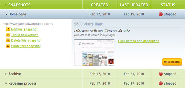 CrazyEgg應(yīng)用了整行選擇的方法展開當(dāng)前選中行的詳情(稍后我們會(huì)談及該模式),鼠標(biāo)懸停的行會(huì)高亮顯示。我很喜歡他們對(duì)這塊區(qū)域以及其他的應(yīng)用的設(shè)計(jì)。