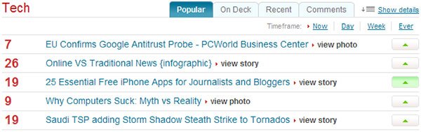 把操作放在每一行數(shù)據(jù)的開頭或結(jié)尾,是個(gè)簡單方法。如下所示,Mixx把操作放在了每一行的末尾,這樣很容易進(jìn)行投票的操作。