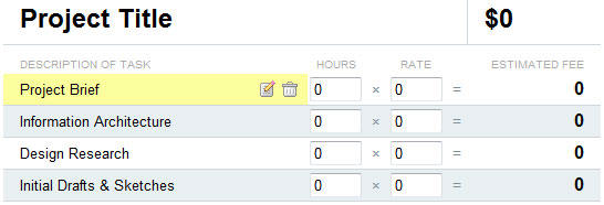 如果有多重操作,可以采取鼠標(biāo)懸停操作方式,該方式是由行內(nèi)操作引申而來。鼠標(biāo)懸停和鼠標(biāo)離開分別顯示和隱藏操作,通過這種方式可以節(jié)省界面空間。Project Estimator by Astuteo 對(duì)每一行都有編輯和刪除操作,鼠標(biāo)懸停到某一行的時(shí)候則顯示操作按鈕圖標(biāo),離開則不顯示。