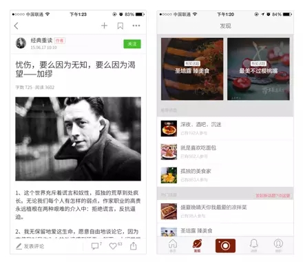 作為一個(gè)「交流故事,溝通想法」的的寫作平臺(tái)App,簡書為了優(yōu)化閱讀體驗(yàn),選擇了思源黑體作為內(nèi)嵌字體,使用戶發(fā)布的不管是簡體中文、繁體中文、還是日文韓文,都能有比較理想的表現(xiàn)。食色的產(chǎn)品概念是和「生活家」們一起,發(fā)現(xiàn)與分享城市中的美食,所以選擇了細(xì)膩精致的方正蘭亭纖黑作為主要的界面字體。用戶第一次使用,就能感受它與其他產(chǎn)品在氣質(zhì)上的不同。