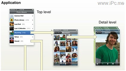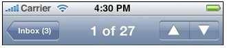 在iPhone 平臺上,如果應(yīng)用程序有信息層級關(guān)系(比如郵箱> 收件箱> 郵件),利用title 進行導航, 導航欄左側(cè)始終是返回按鈕,右側(cè)如果有必要,可以放針對內(nèi)容的操作控件,中間有標題。
