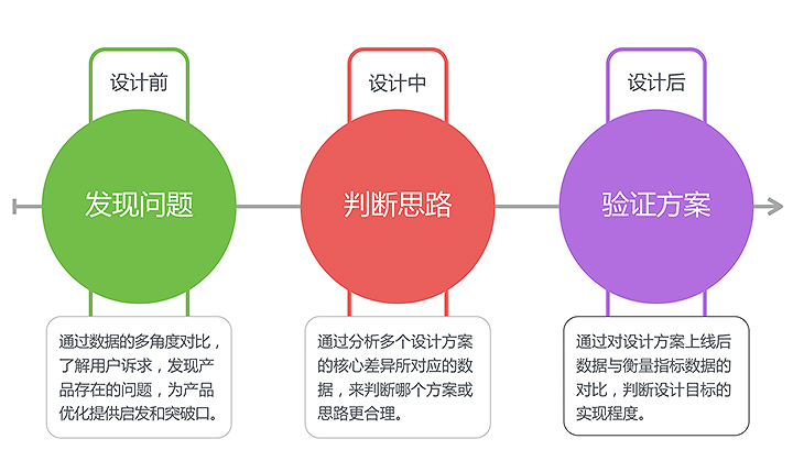 (3)設(shè)計后用于驗證設(shè)計 通過計算上線后的產(chǎn)品數(shù)據(jù),對比設(shè)計前設(shè)定的指標數(shù)據(jù),判斷設(shè)計目標的實現(xiàn)程度。