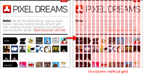 花時(shí)間觀察一些簡(jiǎn)潔風(fēng)格的網(wǎng)站 ,你會(huì)發(fā)現(xiàn)它們當(dāng)中的絕大多數(shù)都有用到經(jīng)過(guò)良好規(guī)劃的網(wǎng)格布局系統(tǒng)。如果哪位朋友對(duì)網(wǎng)格布局還不大了解的話,可以設(shè)想一下,在著手進(jìn)行實(shí)際的視覺(jué)設(shè)計(jì)工作之前,使用輔助線將頁(yè)面劃分為若干等寬的列,通過(guò)這種方式對(duì)頁(yè)面結(jié)構(gòu)及元素的布局進(jìn)行更精準(zhǔn)的規(guī)劃。網(wǎng)格布局可以使設(shè)計(jì)方案當(dāng)中的信息結(jié)構(gòu)更加清晰,在視覺(jué)上具有強(qiáng)烈的節(jié)奏感與一致性。