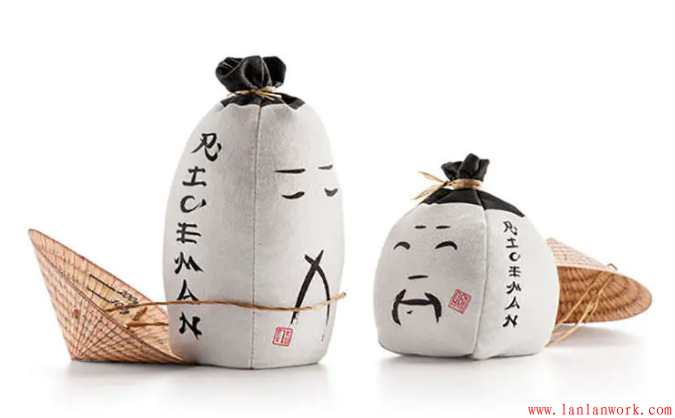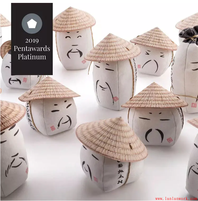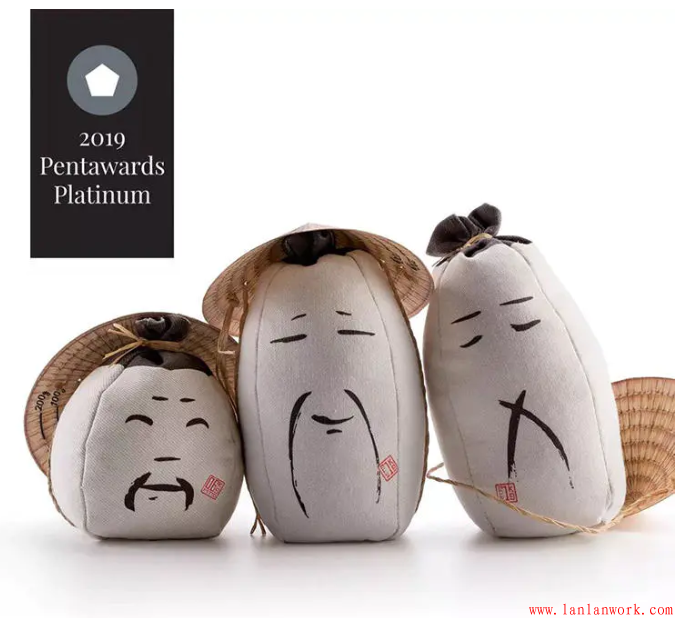 包裝外形以亞洲稻農戴蓑帽的傳統(tǒng)形象為原型,圓錐形帽子紙盒蓋子內側則巧妙與標記測量米量的米杯結合,實用又環(huán)保。兩種不同尺寸的袋子分別裝盛不同的大米類型:短粒米為小袋子,長粒米為高袋子。