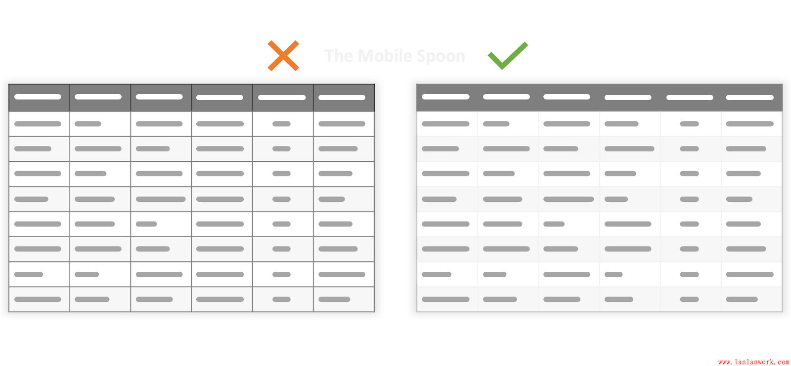 表格和網(wǎng)格是體現(xiàn)結(jié)構(gòu)化信息的,但是,當(dāng)表格的列寬、行高不同時,就會變得混亂,信息也就會變得沒有體系。