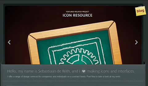 Icon Designer 通過旋轉(zhuǎn)某些元素讓自己與眾不同。這一頁(yè)面很容易成為稀松平常的無聊之作,但簡(jiǎn)單的幾個(gè)旋轉(zhuǎn)讓它趣味十足。