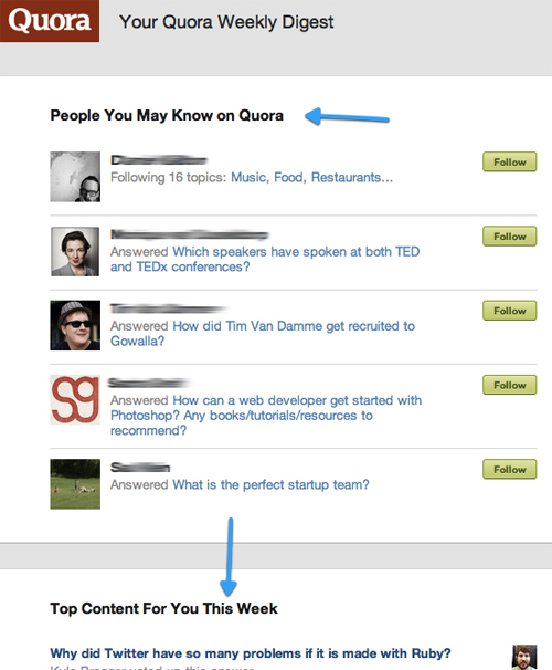 Quora會(huì)在郵件當(dāng)中向用戶(hù)推薦他可能感興趣的內(nèi)容。如果你的網(wǎng)站或應(yīng)用有足夠的數(shù)據(jù)來(lái)支持這樣的個(gè)性化服務(wù),那么就考慮一下吧。