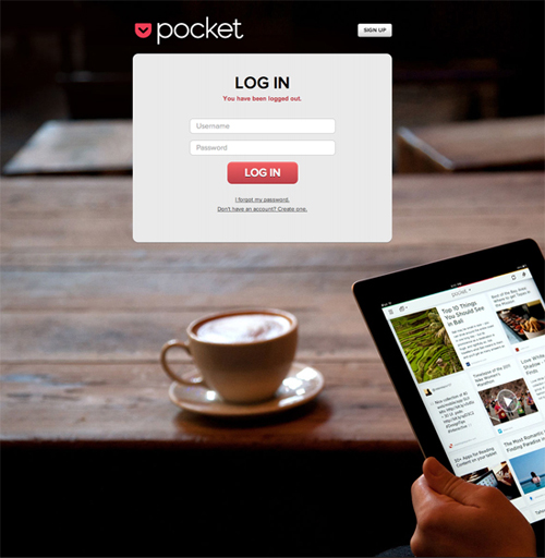 在很多時(shí)候你未必需要做的如此特別。以Pocket 為例,他們的登錄頁(yè)面具有很強(qiáng)的“歡迎”色彩,一幅巨大的背景圖片烘托出了該應(yīng)用的使用場(chǎng)景,讓用戶(hù)覺(jué)得身臨其境,在情緒上產(chǎn)生共鳴。
