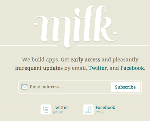 Milk家的細(xì)節(jié)處理方式會(huì)讓用戶(hù)更加樂(lè)于訂閱他們的新聞郵件。他們的做法與Hunch類(lèi)似,都是在文案中明確的告訴用戶(hù)新聞郵件的重要性,而且不會(huì)很頻繁。
