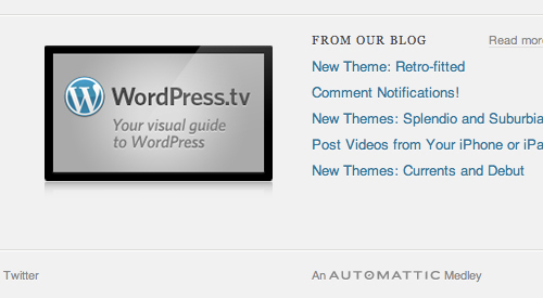 文案 :在wordpress.com首頁(yè)的頁(yè)腳當(dāng)中有一段每次加載頁(yè)面都會(huì)發(fā)生變化的簽名語(yǔ),有時(shí)是“來(lái)自Automattic的產(chǎn)品”,有時(shí)變?yōu)?ldquo;來(lái)自Automattic的樂(lè)章”。這種細(xì)節(jié)體現(xiàn)了他們對(duì)于自己產(chǎn)品的熱愛(ài)。