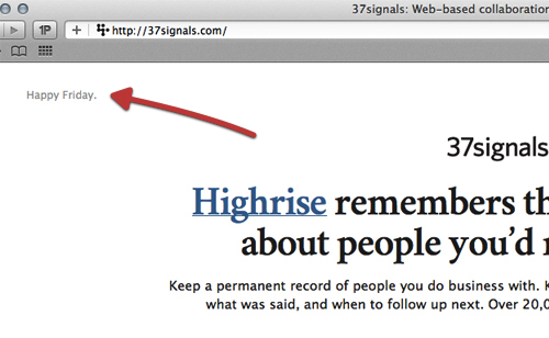 而37signals則通過(guò)左上角的當(dāng)日問(wèn)候語(yǔ)來(lái)簡(jiǎn)單而有效的拉近了網(wǎng)站與用戶(hù)之間的情感距離。