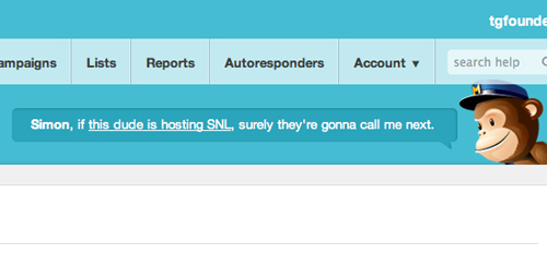 MailChimp 在情感化設(shè)計(jì)方面的一個(gè)特色之處就是他家的吉祥物,猩猩Freddie。這家伙會(huì)在你的個(gè)人資料頁(yè)打開(kāi)之后為你歡呼,而且每次刷新頁(yè)面之后都會(huì)冒出一些隨機(jī)的笑話(huà)或鏈接。