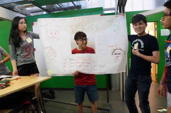 除了具體的五步,與一開始所說,Design Thinking的一個(gè)特點(diǎn)是視覺化思考,所以整個(gè)過程中,在每一個(gè)環(huán)節(jié)里我們都有一兩個(gè)presentation要做,最基本的是列舉關(guān)鍵詞或句子來表達(dá),然后是用畫漫畫的方式來“講故事”,或者用表演的方式來闡述自己的想法:
