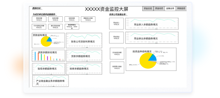 右側(cè)是客戶給的原型,只是把要展示的數(shù)據(jù)簡單羅列了一下。考慮到大屏應(yīng)用場景,比如公司會議,集團(tuán)視察,行業(yè)參觀等,都是宏觀數(shù)據(jù)展示為主。所以在設(shè)計時不僅要考慮美觀性,更要考慮到整體的交互布局以及交互方式,確保關(guān)鍵數(shù)據(jù)和指標(biāo)在界面上以醒目的方式呈現(xiàn),以便用戶快速識別和理解。設(shè)計清晰簡潔的布局,避免信息過載,使用戶能夠輕松找到需要的信息。